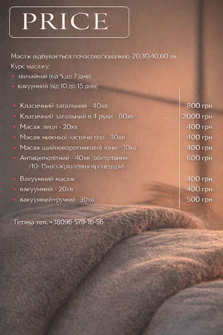 Професійний масаж для зняття болю та напруги. Індивідуальний підхід, комфортна обстановка.
