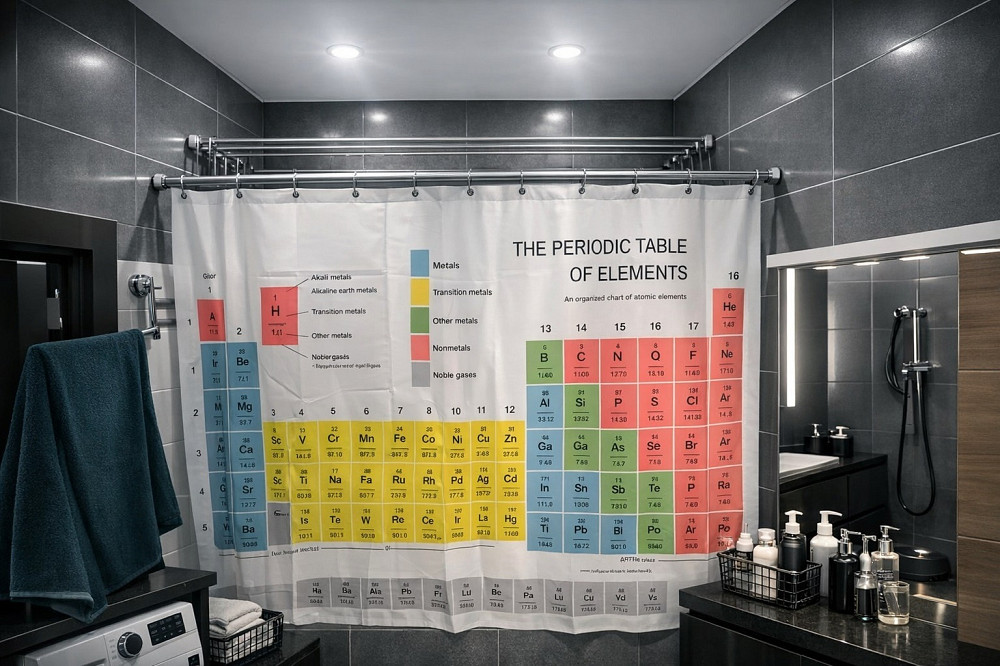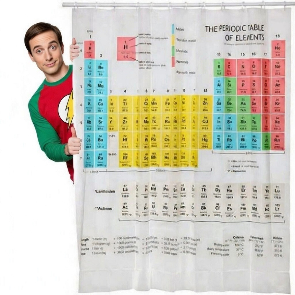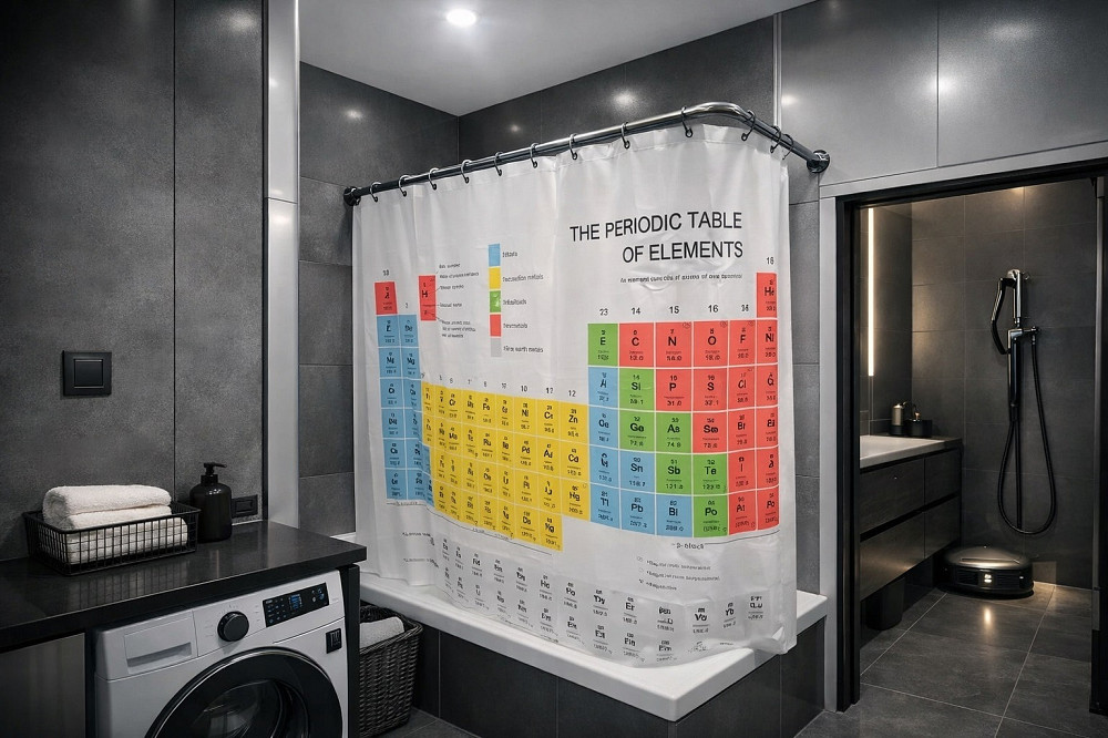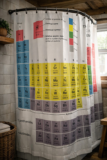 Если вы когда-нибудь мечтали, чтобы ваша ванная выглядела как лаборатория из "Теории Большого Взрыва", то эта шторка — ваш шанс! Теперь вы можете принимать душ и одновременно освежать знания по химии (или просто чувствовать себя умнее).