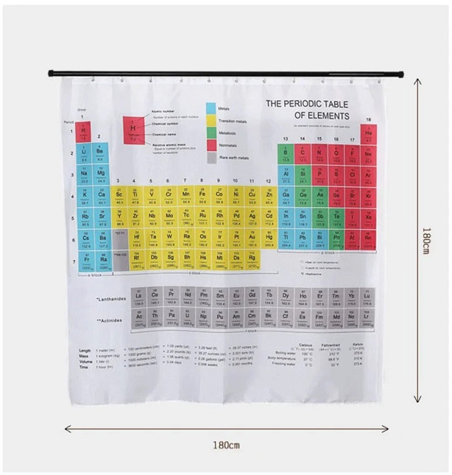 Шторка для душа: таблица Менделеева для тех, кто любит науку.