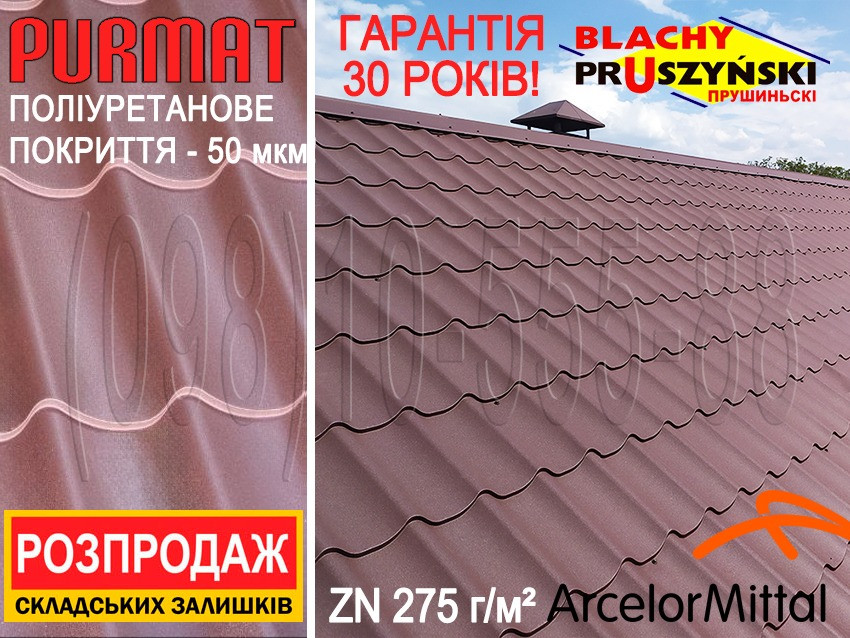 Если вы ищете, где купить металлочерепицу Шафир Прушинськи Пурмат в Киеве и области по цене склада, — это предложение специально для вас!