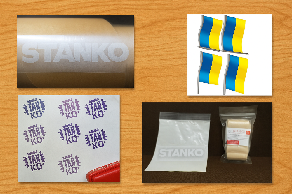 Технології, які застосовуються відносно до самоклеючого паперу та плівки: цифровий, офсетний, широкоформатний, УФ-друк. Післядрукарська обробка: порізка по контуру, ламінація, глянцева/матова поверхня. Форми та розміри — практично будь-які.