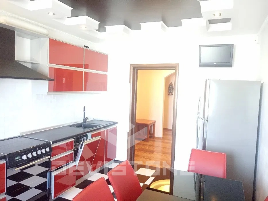 Квартира, після косметического ремонта, площа 100/55/15 повністю обладнана та мебльована, два бойлери, три кондиціонери, чотири телевізори, wi-fi, сигналізація, домофон, підігрів підлоги, лічильники на опалення та воду, шафа-купе довжиною 5м, гардеробна, відмінна.