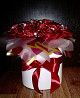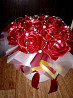 Бордові троянди з атласної стрічки в коробці