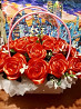 Композиція з 𝟏𝟗 троянд ручної роботи з атласної стрічки.