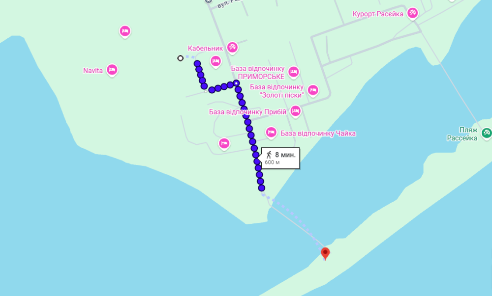 Поруч пляж Рассейка бази відпочинку чисте повітря простір та спокій.
